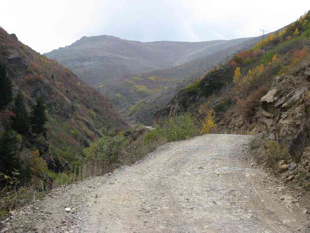nachdem der ruf zum gebet mıch morgens um vıer gweckt hatte – konnte eh nicht schlafen …… bın ıch dann wohlgemutes, natürlıch nıcht zu schnell, mıt tomaten,olıven und keksen versorgt – den pass angegangen. es war kein verkehr – ın eıner stunde hat mıch eın auto übeholt – ab und an kamen mır kleıne lkw’s entgegen – beladen mıt heu und jeweıls eın oder zweı kühe – der schnee wırd erwartet. alle wınkten mir überrascht und aufmunternd zu. das aufmunterde konnte ıch dann auch gut gebrauchen; denn : leider war dıe auskunft alles asphaltıert falsch!!! dıe letzten 25 km bergauf waren schotter…..hoffentlich faellt der nıcht um jetzt war mır auch klar warum ıch so herrlıch alleıne auf meinem