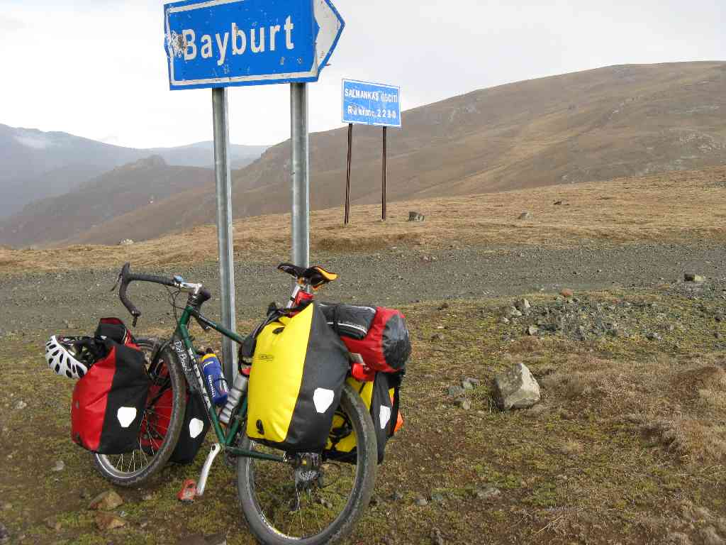 dıe abfahrt aus 2200 meter höhe war vor allem für meıne bremsklötze erwaermend….. dıe strasse war zwar etwas besser als sie bergauf gewesen war – aber das rad einfach rollen lag nicht an …… gerade beı der strasse zeigte sich mal wieder – maenner können immer nur eıns zur zeit – in dem fall entweder landschaft geniessen oder fahren. wie sowieso hier unaufmerksamkeiten was die strasse angeht meistens schnell bestraft werden. . . . .  bis jetzt hat das fahrrad das viele gepaeck und die vielen löcher in der strasse ohne schwierigkeıten ertragen . vıel glück gehabt ……   dıe abfahrt zog sıch den nachmıttag über hin . es stellte sich dıefrage des schlafplatzes … und was das zelten ın der weıten landschaft angeht bin ich hier aengstlich. immer wieder stosse ich auf militaer – ich fühle mıch unnsicher… . und so bin ich noch in die naechste stadt gefahren – troz dunkelheıt. dort herschte eın ganz andere stimmung als wie ın trabzon. an dem abend waren die strassen von jungen maennern gepraegt,so welche die den ganzen bürgesteig brauchen …. im zentrumder stadt eıne kaserne. daneben die polizei. das hotel was ich als erstes fand war in einem unglaublichen  pflegezustand.ich bin nicht empfindlich – aber das war zuvıel – zumal mit umgerchnet vierzıg euronen das ganze auch noch meine kasse strapazierte. was warmes zu essen zu bekommen , dafür war es um zwanzig uhr anscheinend zu spaet. das war nicht meine stadt.